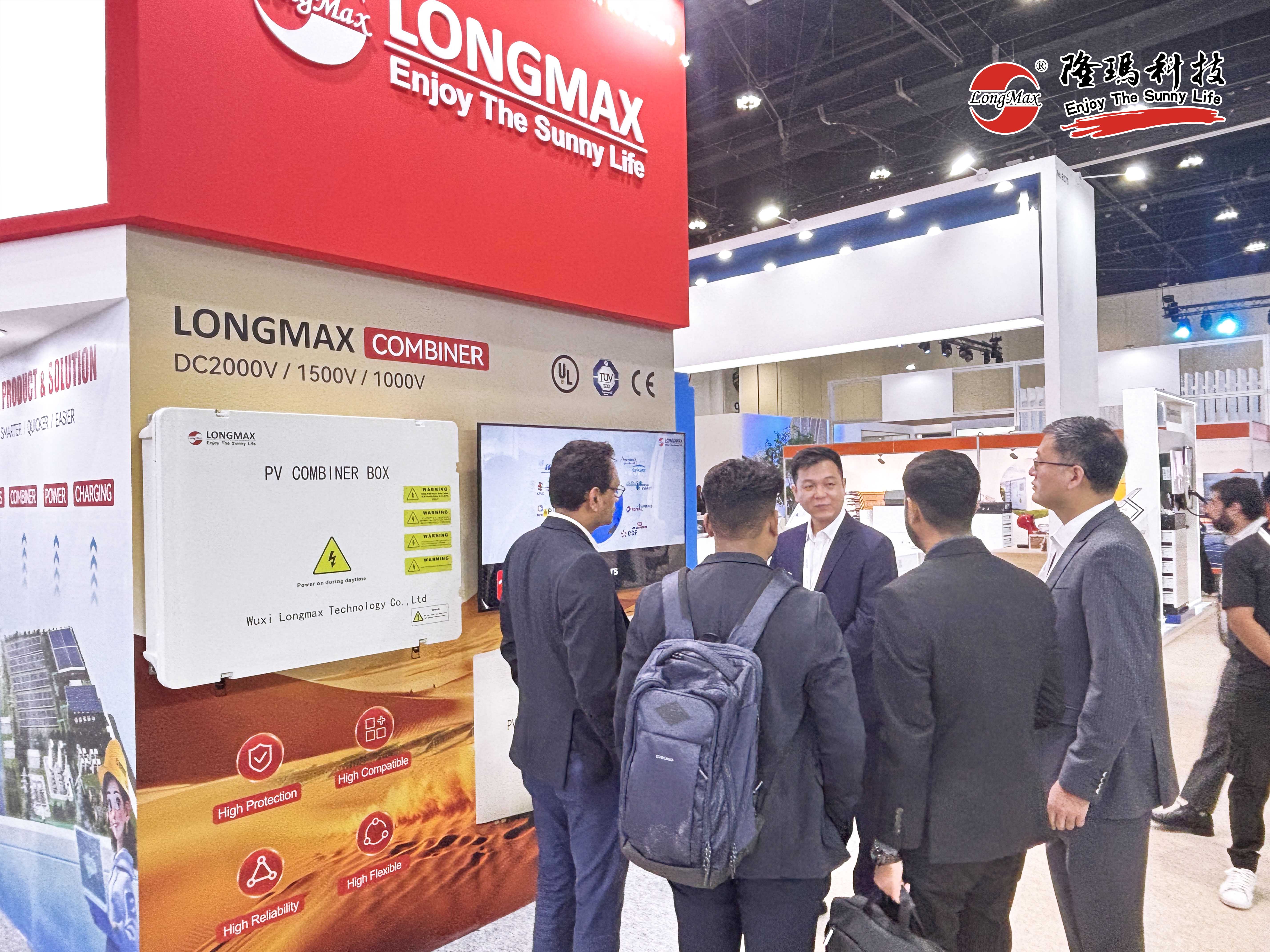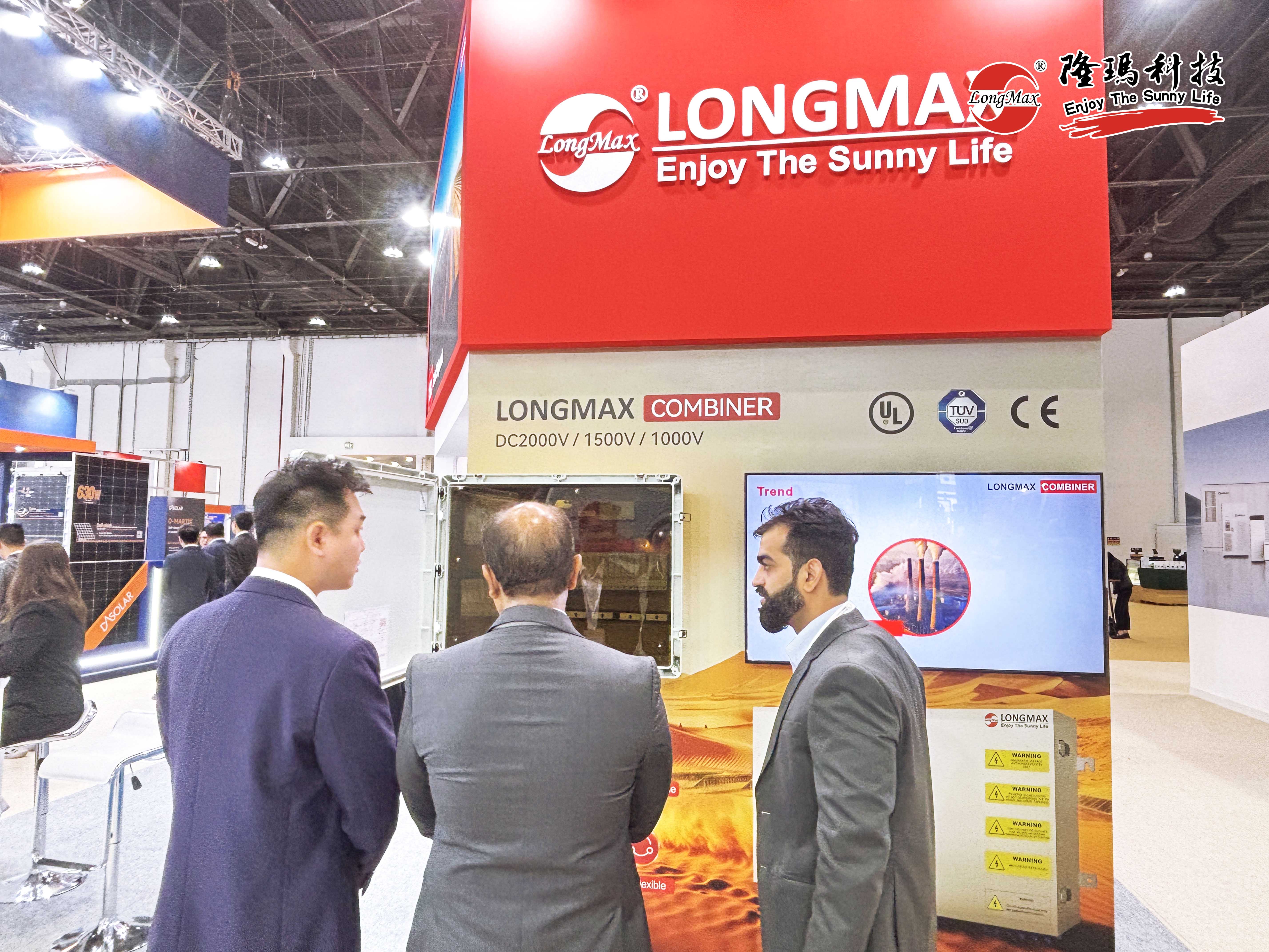 在展會上,隆瑪新一代DC2000V光伏系統(tǒng)智能匯流箱一經(jīng)亮相便以創(chuàng)新設(shè)計與卓越性能牢牢鎖住諸多參觀者的目光,成為現(xiàn)場TOP級“流量明星”。從傳統(tǒng)DC1500V升級到DC2000V,隆瑪DC2000V光伏智能匯流箱在輸入輸出電壓性能上實現(xiàn)了顯著提升,系統(tǒng)傳輸損耗更是銳減至0.5%,從而大幅提高了整個能源系統(tǒng)的轉(zhuǎn)換與傳輸效率。同時,其全新的大箱體設(shè)計,配合多種先進的自動檢測、關(guān)斷功能以及智能通信運維功能,不僅滿足了更高等級的防護要求,更能穩(wěn)健地應(yīng)對沙漠環(huán)境中各種極端惡劣條件。
