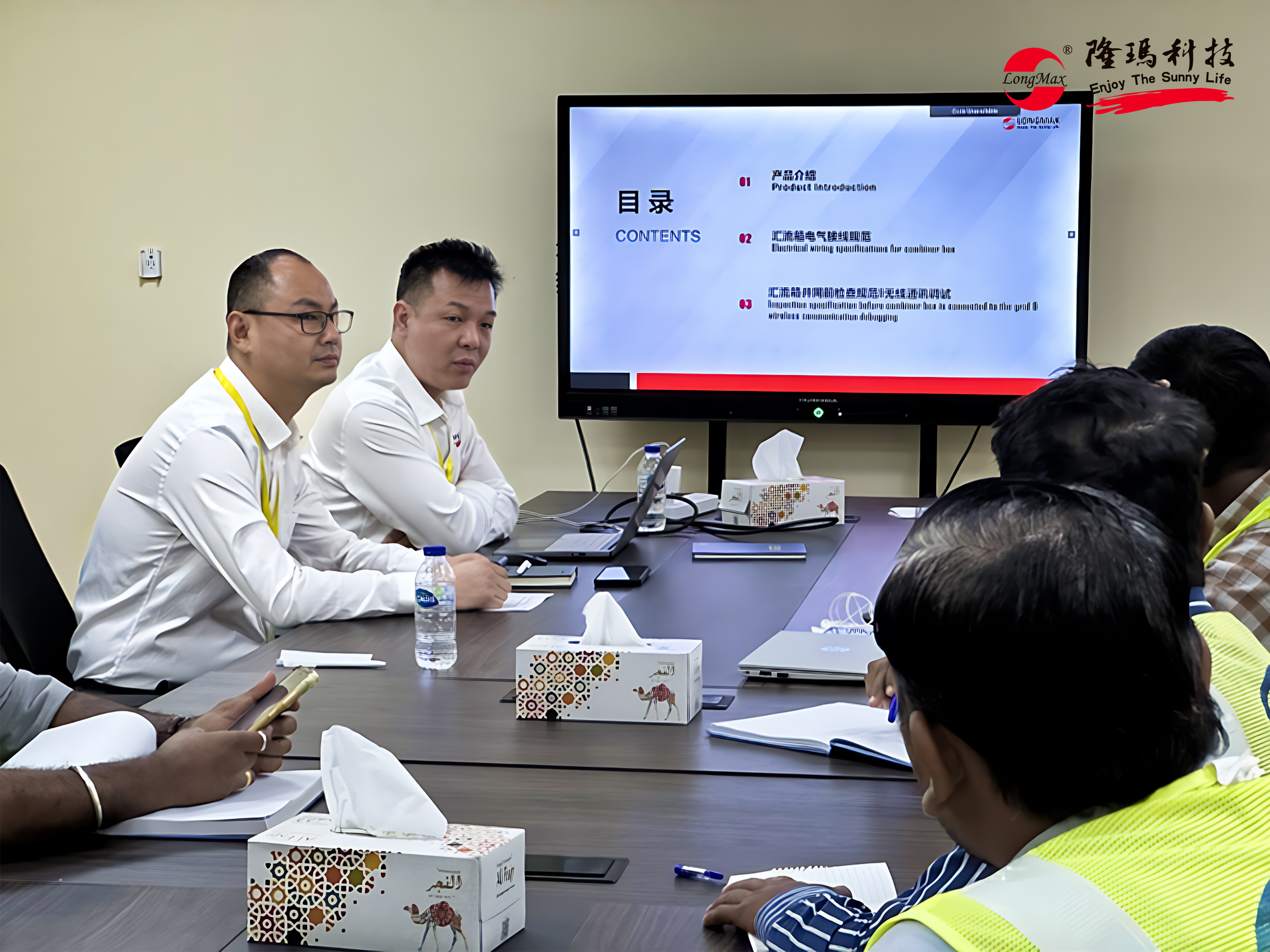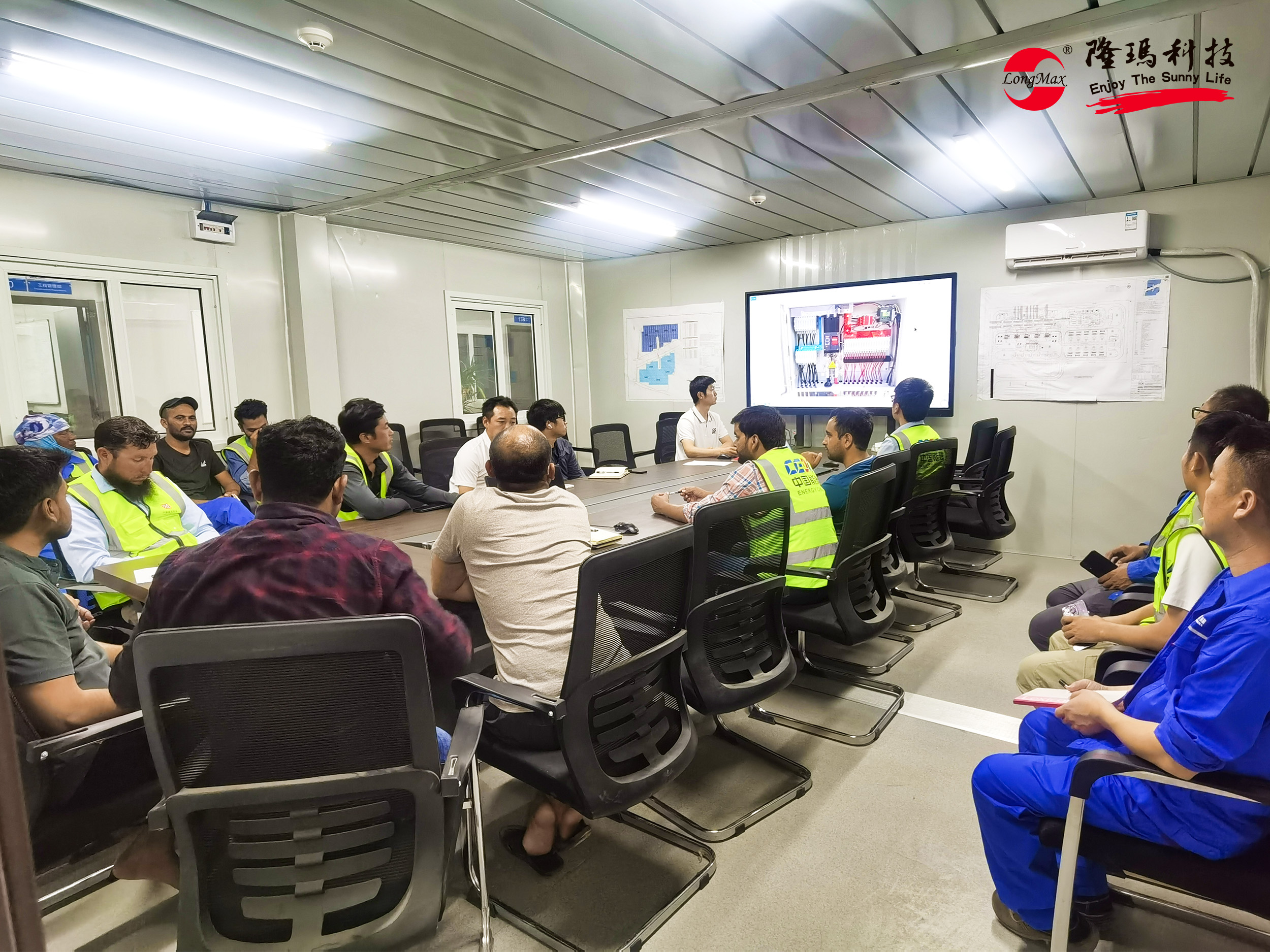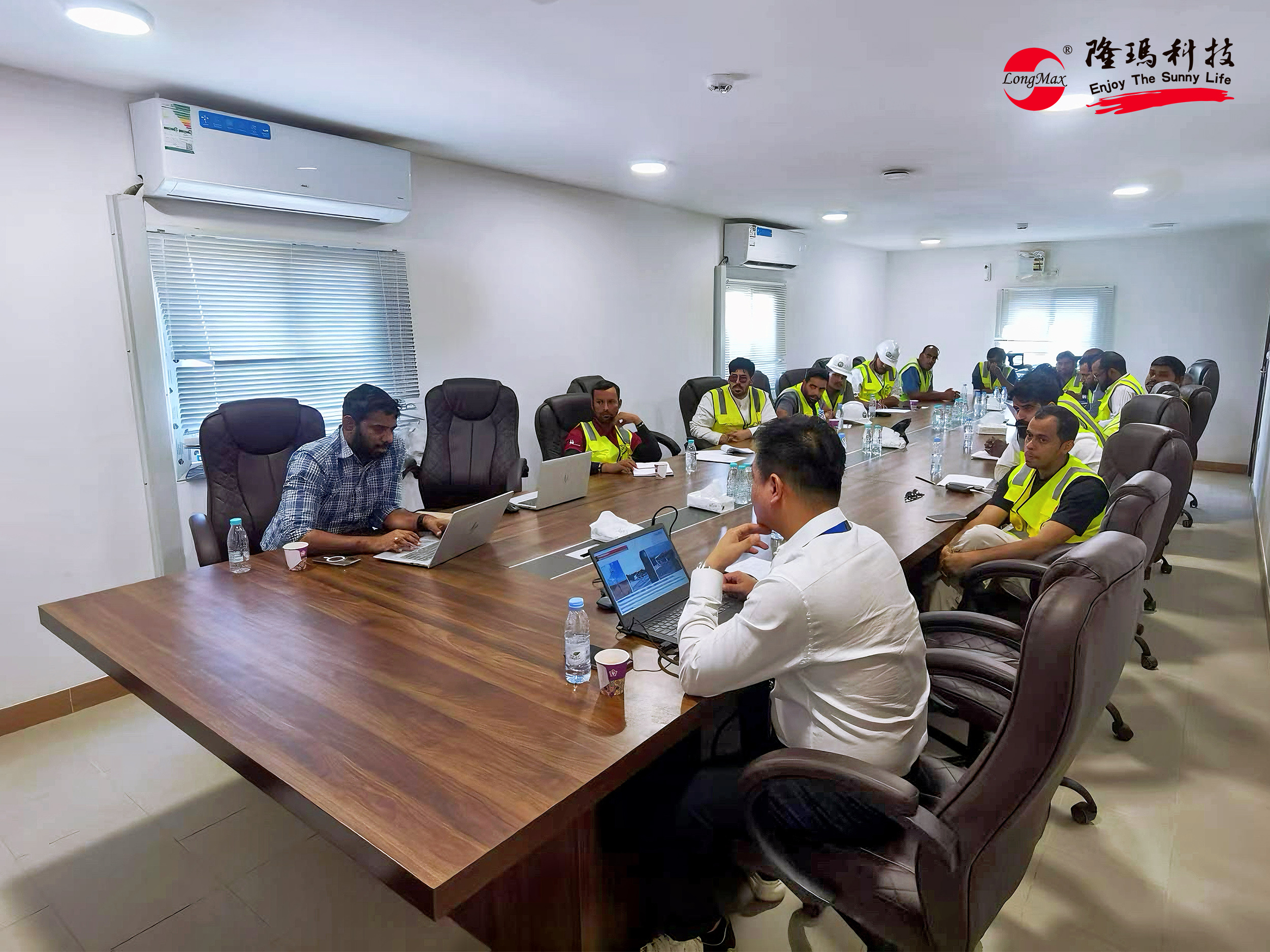 沙特AL MUWAYH 2000 MW 項目深處沙漠腹地。在項目關鍵節(jié)點,隆瑪科技團隊迎戰(zhàn)極端高溫,迅速響應。憑借豐富的實戰(zhàn)經(jīng)驗與深厚的專業(yè)素養(yǎng),團隊一天內(nèi)高效完成并網(wǎng)前檢查要點及注意事項的專項精訓,為項目順利推進與關鍵節(jié)點達成奠定堅實技術基石。